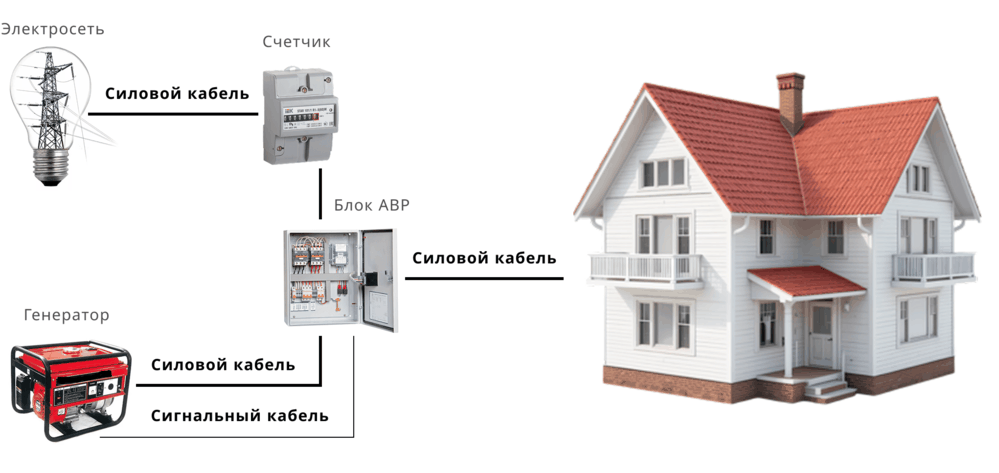 Переключение | Автоматическое (через щит АВР) | Ручное (через реверсивный рубильник) |